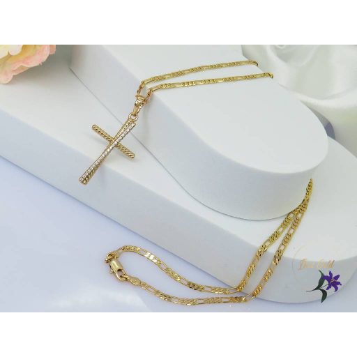 Antiallergén kereszt medálos nyaklánc Vékony kereszt rajta cirkóna díszítés , lánc figaró szemes Szin: 18K Méret: 50cm/ 2,5mm Medál: 34x20mm