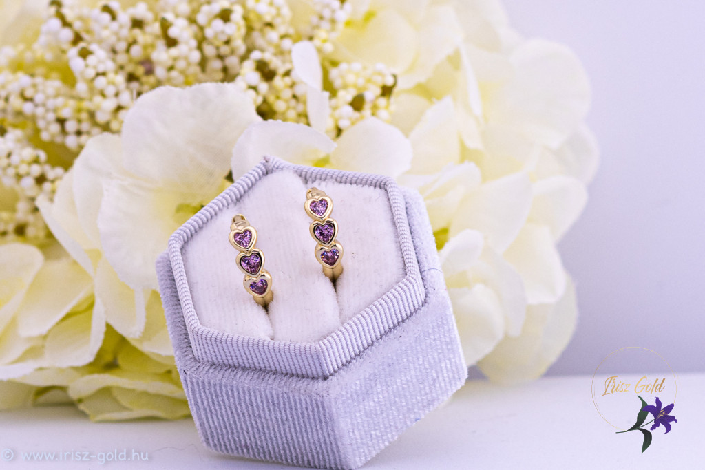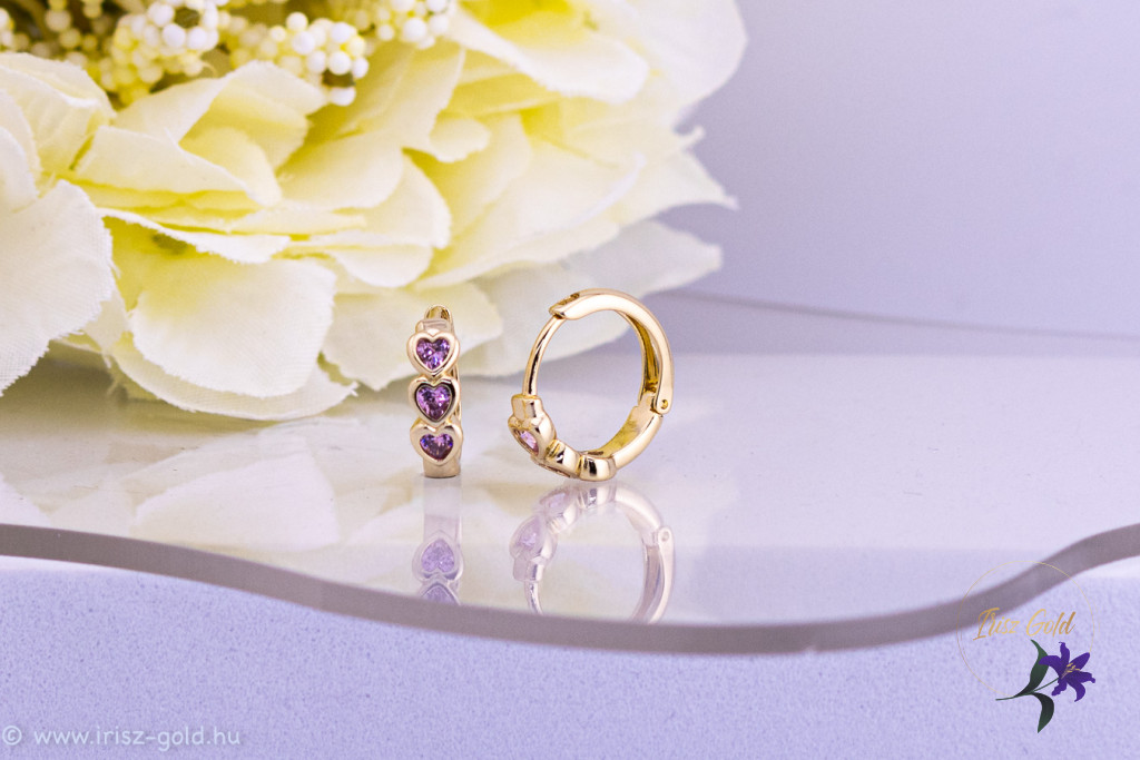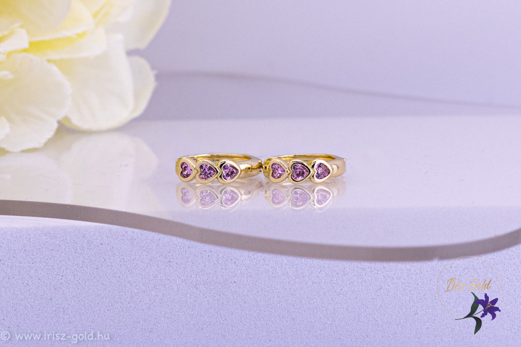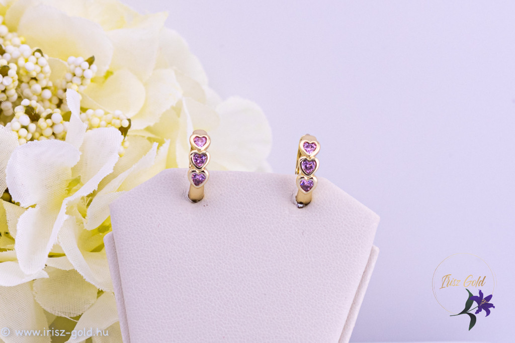 A praktikus kiskarika kialakítás kényelmes viseletet biztosíthat, nem akad könnyen a hajba vagy ruhába, ezért akár egész nap hordható. A rózsaszín szívek játékos, fiatalos karaktert kölcsönöznek a fülbevalónak, így ajándékként is kedvelt választás lehet.