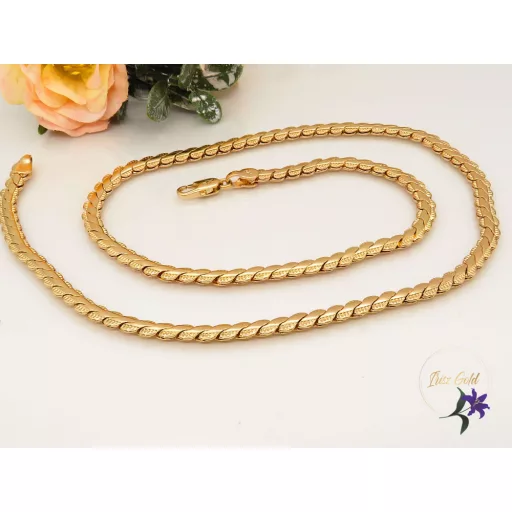 Gold filled gyönyörű ferde lapos szemes nyaklánc szélén díszítéssel