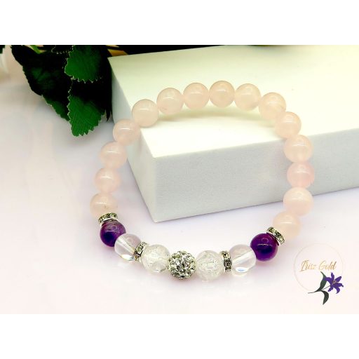 Ásvány karkötő rózsakvarc kristállyal sambala gyönggyel Méret: 16-20 cm Gyöngy: 8mm