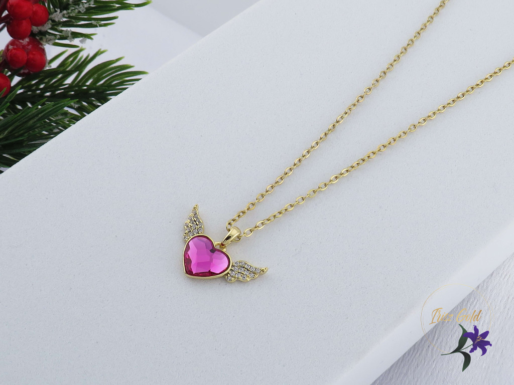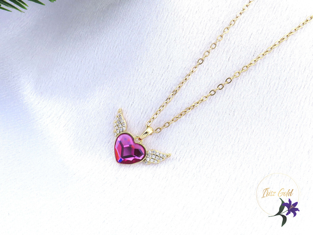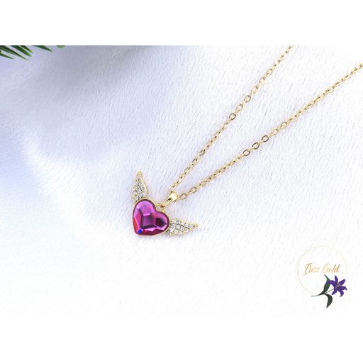 Antiallergén bőrbarát kristályköves nyaklánc Elegáns nyaklánc kifinomult szív angyal szárnyakkal Szin: 14K Méret: 40+5cm Medál: 22x15 mm