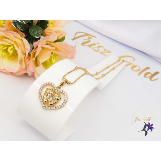 Antiallergén arany gyöngyös nyaklánc kis talpacskák medállal .Szin: 18K Méret: 55cm / 2mm Medál:22x20mm
