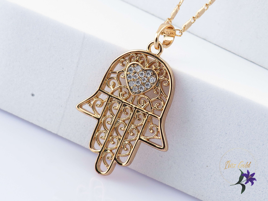 Dea antiallergén „Fatime keze” medálos nyaklánc – 18K
