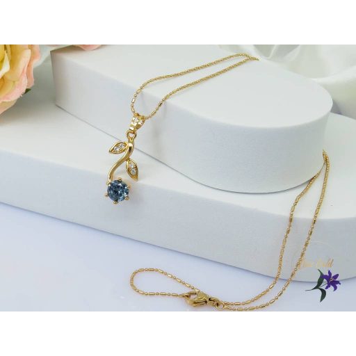 Antiallergén kék virágos nyaklánc Kék színű cirkóna köves virág alakú medál, finom lánccal Szin: 18K Méret: 50cm/2mm Medál: 30x7mm