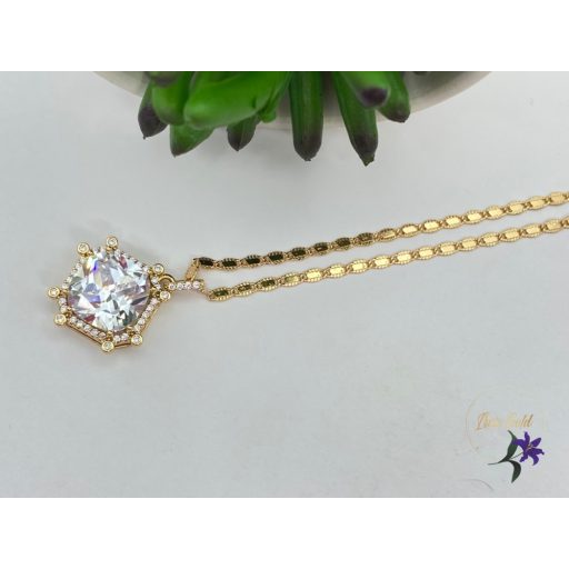 Gyönyörű nagy cirkóna köves medálos nyaklánc Szin: 18 Kr Méret : 50 cm / 2 mm Medál : 25x20 mm