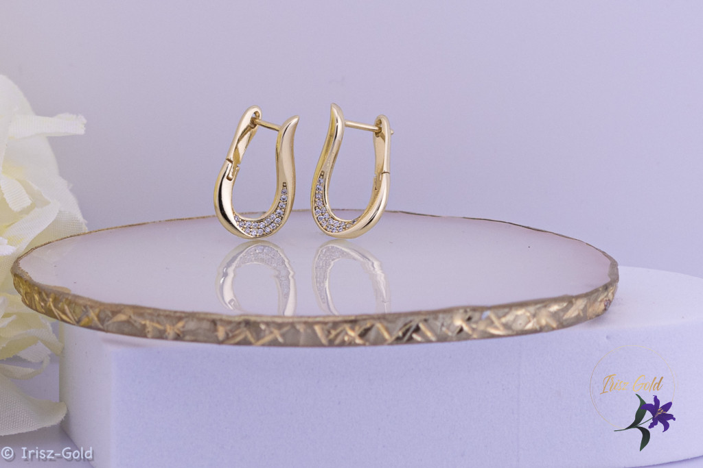 A fülbevaló díszítését gondosan csiszolt cirkónium kövek adják, amelyek foglalatban kapnak helyet. Ez a megoldás stabil tartást és biztonságos rögzítést biztosít, miközben kiemeli a kövek tiszta, ragyogó fényét. A kisebb méretű kövek finom csillogást nyújtanak, nem túlzóak, ezért a fülbevaló nappali és esti viselethez is jól illik.