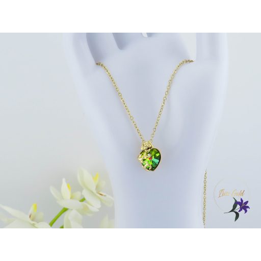 Antiallergén JingJing szinváltós Swarovski köves nyaklánc .Medál szív alakú rózsa foglalatban . Kő gyönyörűen változtatja színét a fényben kék, zöld,piros Szin : 14K Méret: 40cm + 5cm -es lánc jár hozzá de cserélhető Medál: 15x10mm