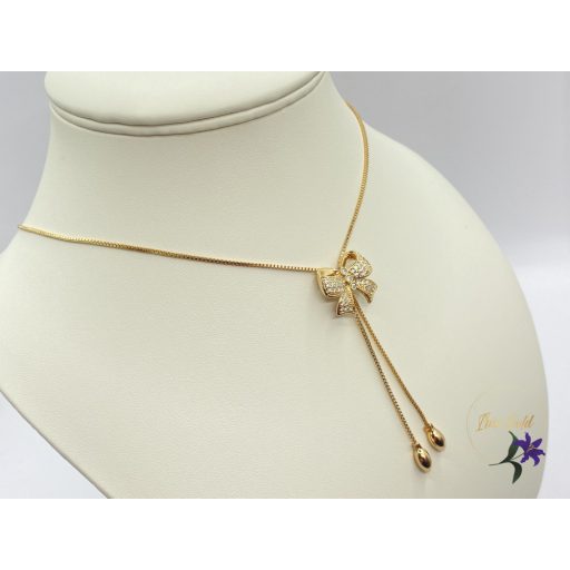 Gyönyörű nyaklánc masni medállalSzin: 18KrMéret: Állitható hosszúság max 59 cm -ig Medállal lehet állitani a nyaklánc hosszát.Medál mérete:20x20mm