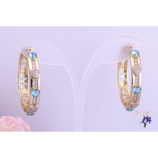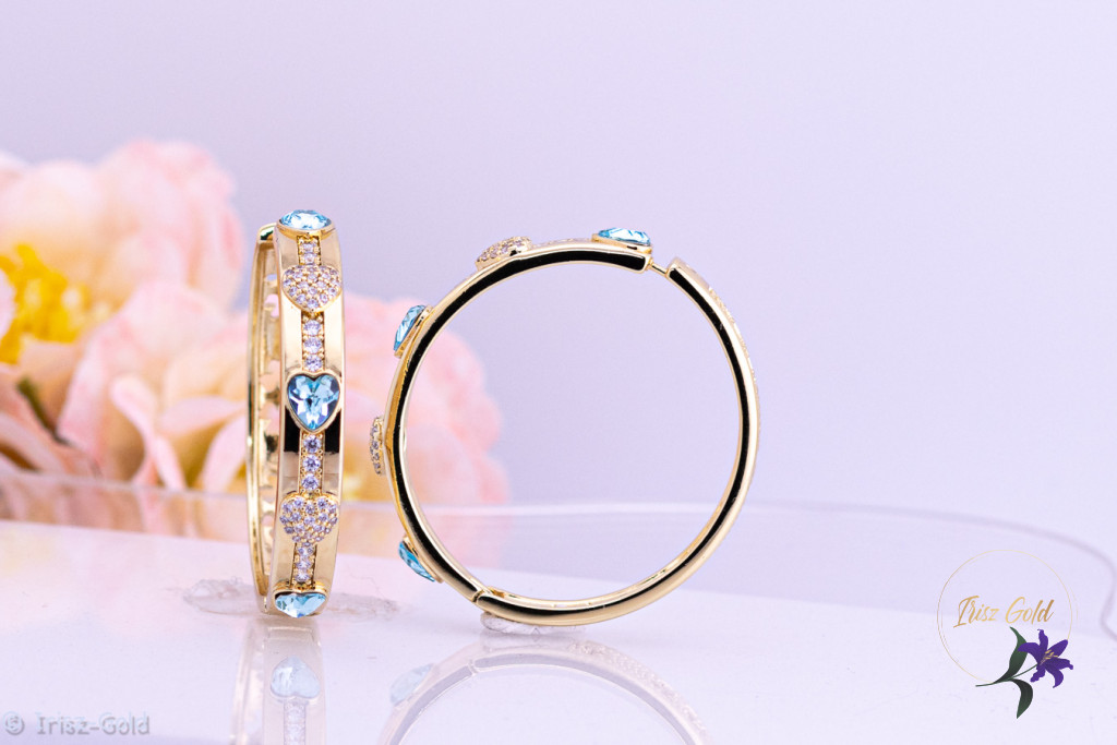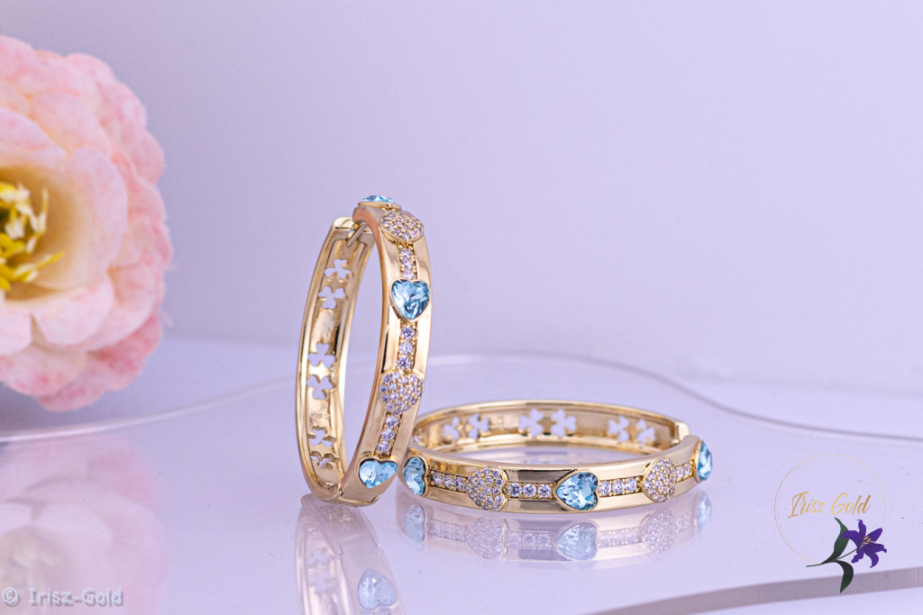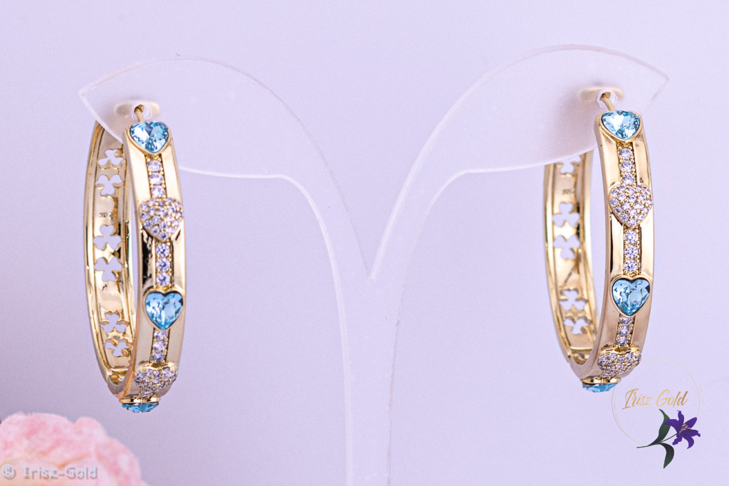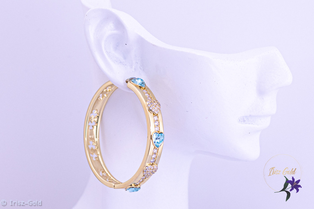 A Jerta prémium kategóriás antiallergén kék kristályköves karika fülbevaló elegáns, mégis visszafogott kiegészítő, amely jól illik a mindennapi öltözethez és az alkalmi megjelenéshez is. A 14K hatású arany szín klasszikus megjelenést kölcsönöz, míg a kék cirkónium kövek friss, modern kontrasztot teremtenek.