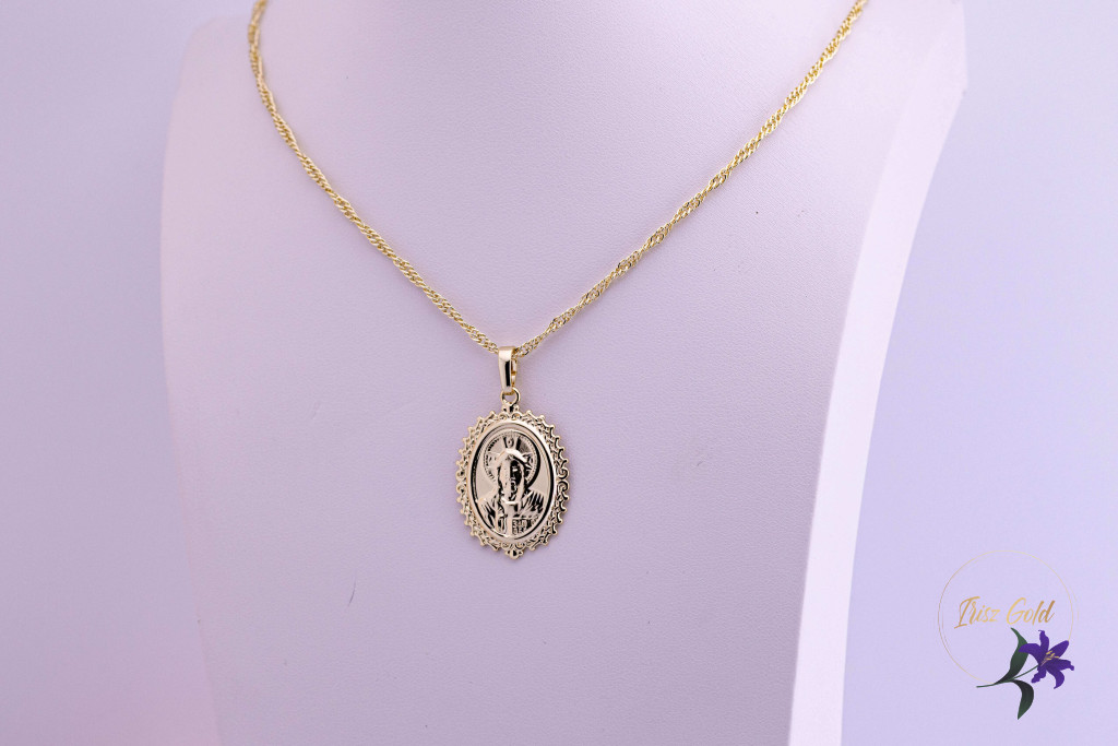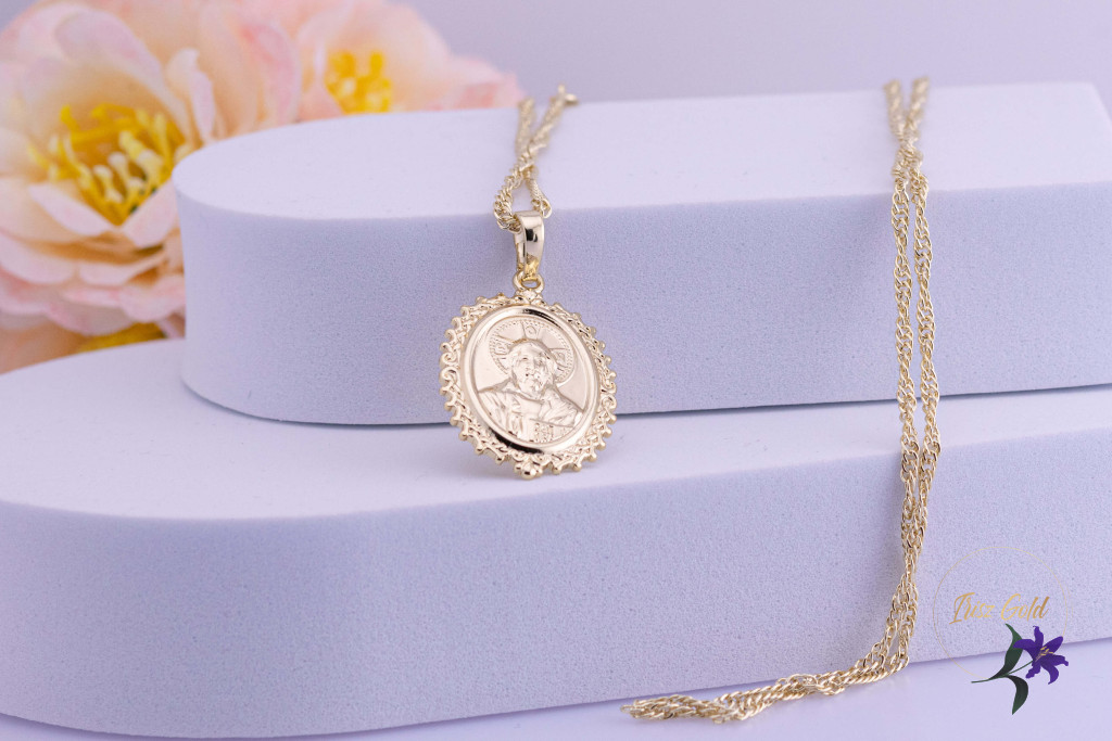 A Jézust ábrázoló antiallergén ovális medálos nyaklánc -14K letisztult, mégis különleges kiegészítő, amely egyszerre képvisel hitet, eleganciát és visszafogott stílust. A klasszikus ovális medálon finoman kidolgozott Jézus-ábrázolás látható, amely a mindennapokban is diszkréten viselhető, mégis jól felismerhető motívum.
