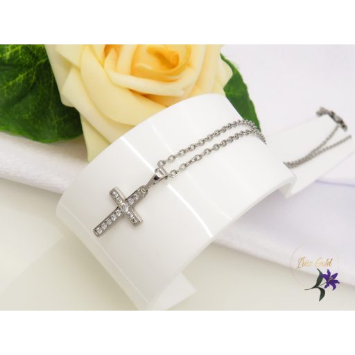 Antiallergén kereszt medálos nyaklánc .Kis kereszt cirkóna kővel díszítve Szin: rodium( ezüst) Méret: 49cm/2mmMedál: 20x10mm
