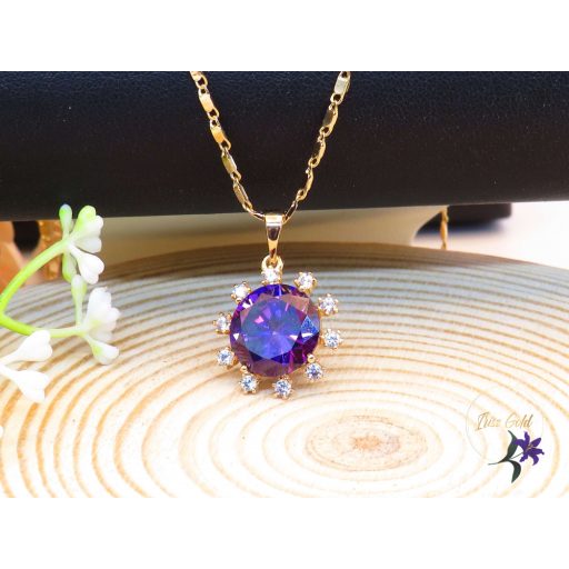 Gyönyörű lila köves nyaklánc Szin: 18KrMéret: 50 cm/ 2 mm Medál : 25x17mm