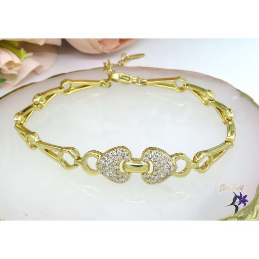 Antiallergén bőrbarát karkötő középen két szívecske cirkóna kővel díszítve