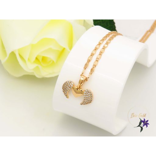 Lenka antiallergén szíves angyalszárny medál metszett nyaklánccal-18K