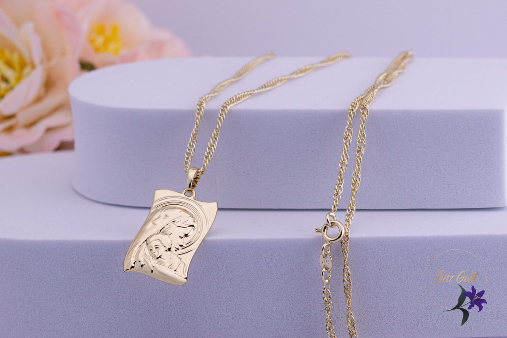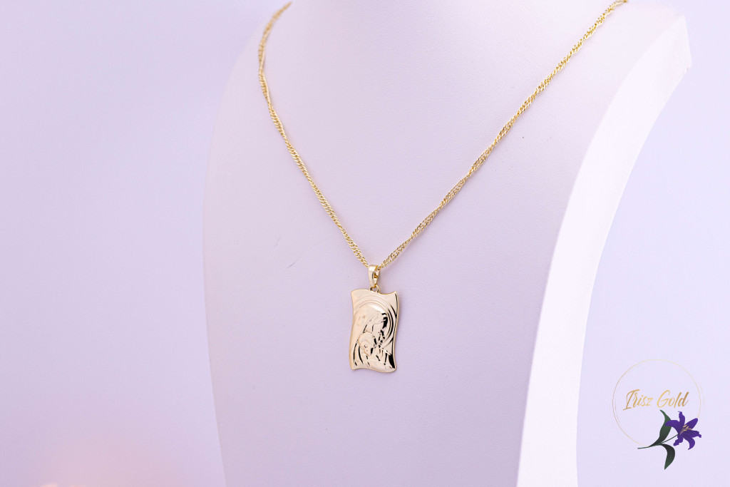 A Máriát ábrázoló antiallergén medálos nyaklánc -14K kifinomult, mégis visszafogott ékszer, amely különösen azok számára ideális, akik érzékenyek a fémekre, de nem szeretnének lemondani az elegáns kiegészítőkről. A medál klasszikus, Mária-ábrázolású motívuma időtlen megjelenést kölcsönöz, így jól illeszkedik a mindennapi öltözethez és az alkalmi viselethez is.