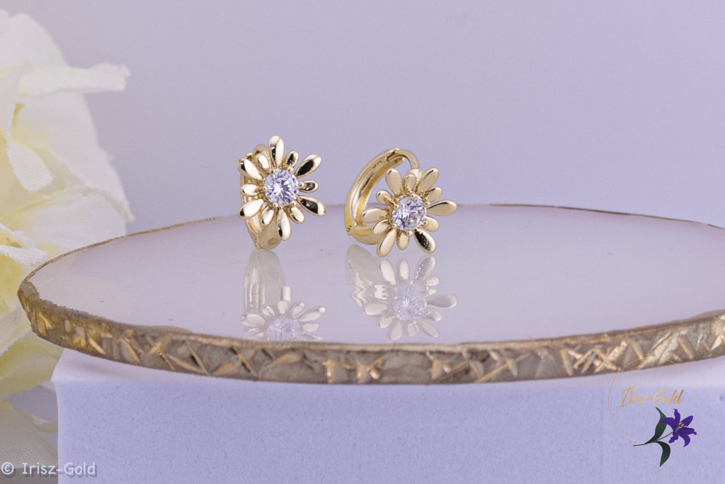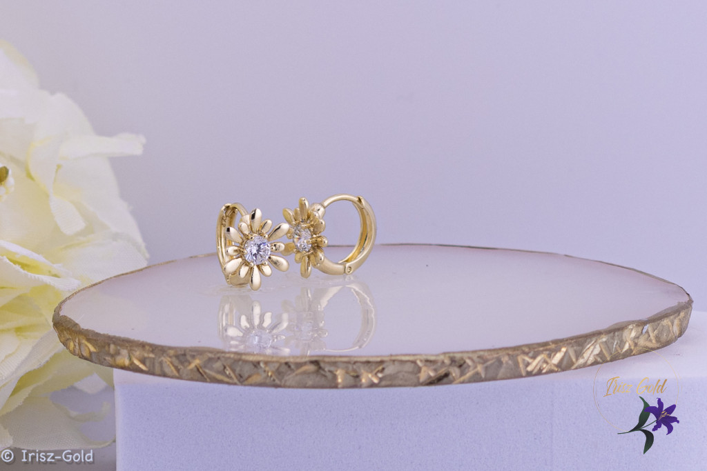 Marica antiallergén virág alakú karika fülbevaló – 14K