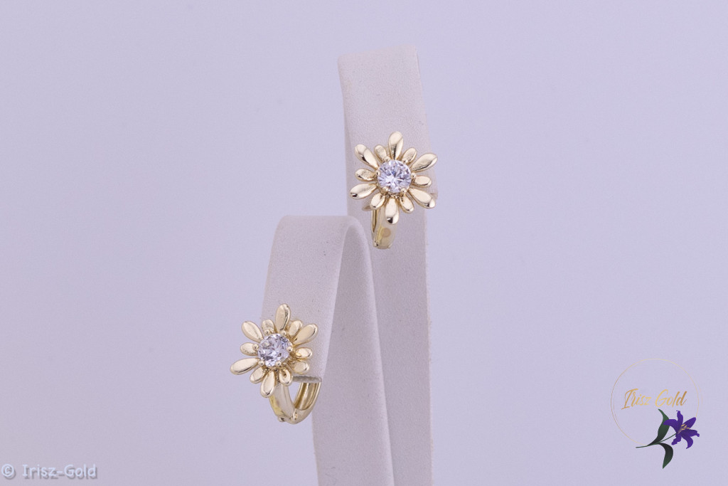 A virágmotívum közepén elhelyezett, gondosan csiszolt cirkónium kő finom, de látványos csillogást ad. A kő foglalatban kapott helyet, ami stabil rögzítést és biztonságos viselést tesz lehetővé. A cirkónium kövek fényjátéka jól érvényesül természetes és mesterséges fényben egyaránt, így a fülbevaló diszkréten kiemeli az arc vonásait.