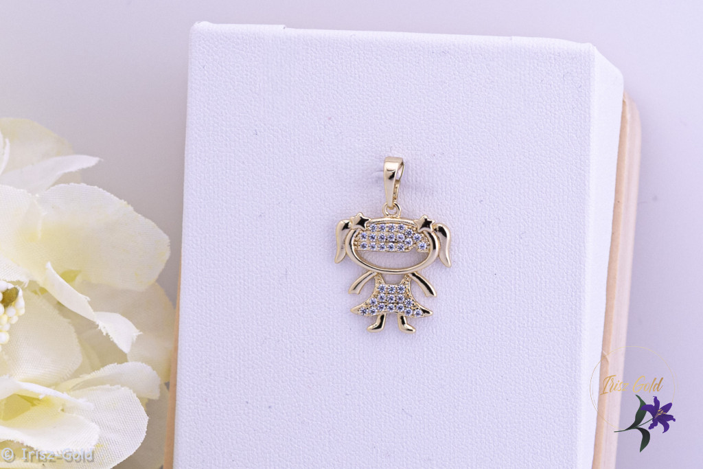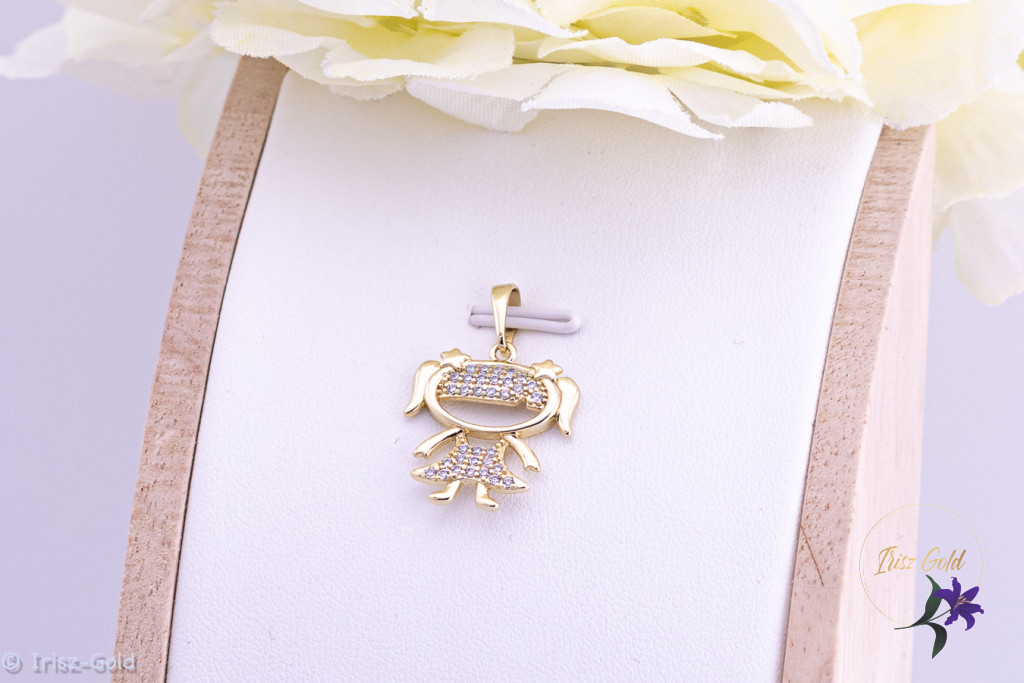A medál 14K hatású, elegáns aranyszínben ragyog, amely időtálló, klasszikus megjelenést biztosít. Letisztult formavilága a kislány sziluettjével kedves, személyes üzenetet hordozhat – tökéletes választás lehet édesanyáknak, nagyszülőknek vagy keresztanyáknak, de akár egy fiatal lány első komolyabb ékszereként is megállja a helyét.
