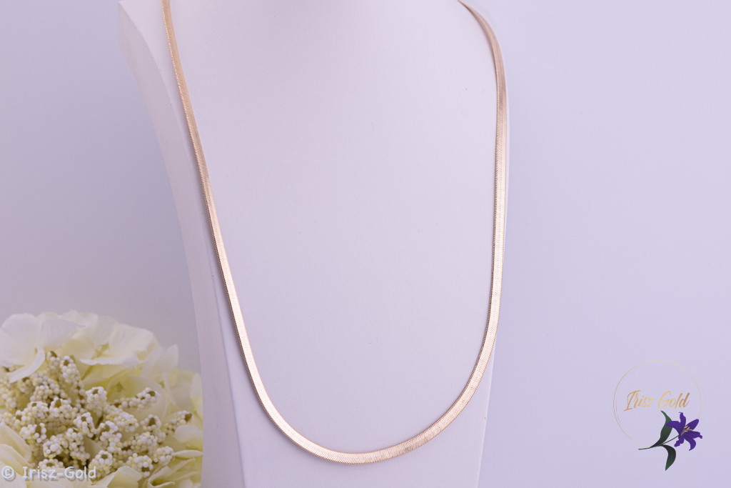 A Rena antiallergén lapos fényes hosszú, kb. 60 cm-es 18K nyaklánc elegáns megjelenést és kényelmes viseletet kínál azoknak, akik érzékenyek a fémekre, de nem szeretnének lemondani a divatos kiegészítőkről. Letisztult, lapos láncszemei szépen felfekszenek a nyakon, így diszkrét, mégis látványos kiegészítője lehet mindennapi és alkalmi szetteknek egyaránt.