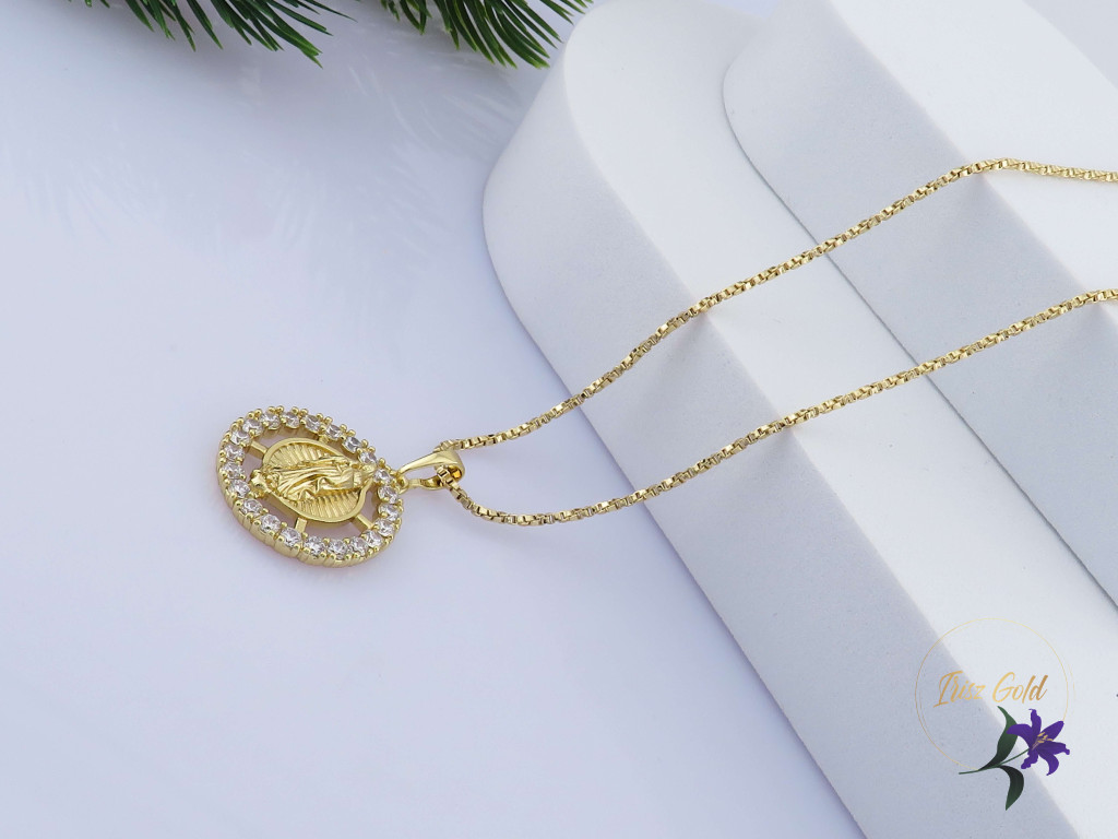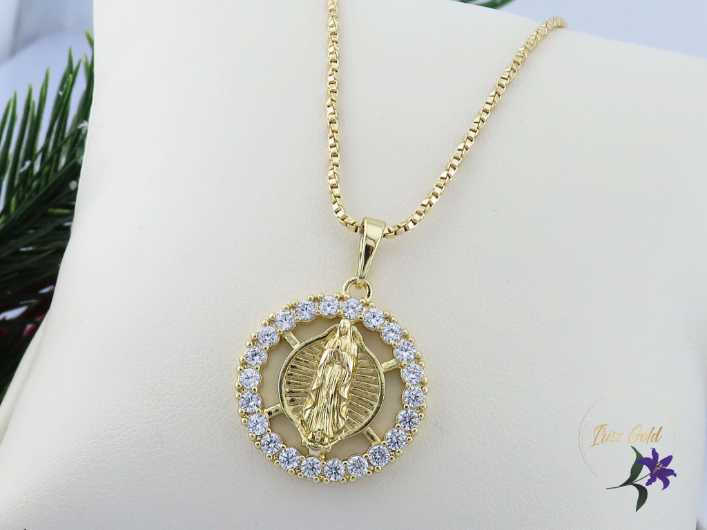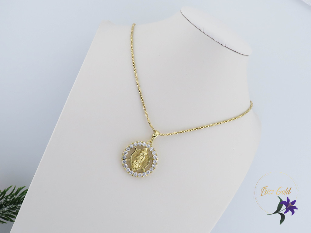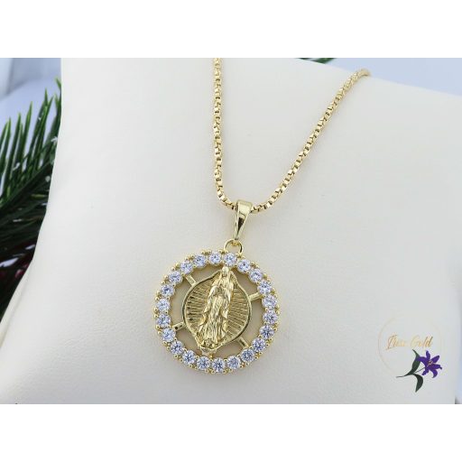 Goldfilled Szűz Máriát ábrázoló medálos nyaklánc Medál körbe díszített cirkon kövekkel Szin: 14K Méret: 55 cm/ 2mm Medál: 30x20mm