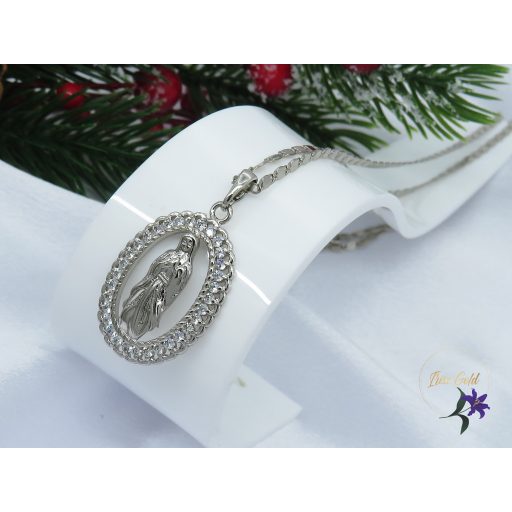 Antiallergén bőrbarát medálos nyaklánc Máriát ábrázoló medál ovális foglalatban körbe cirkon kővel Szin: rodium Méret: lánc 50cm/ 2,5mm Medál : 35x20mm