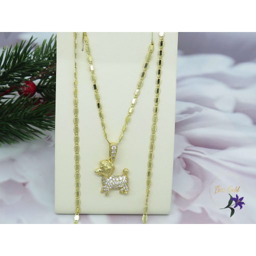 Antiallergén bőrbarát kutyusos medál hozzá illő nyaklánccalSzin: 14K Méret: 50cm / 2,5mm Medál: 25x15mm Medál gazdagon díszített