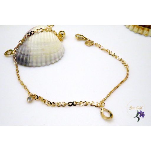 Gyönyörű bokalánc többféle láncszemből szép díszekkelSzin: 18 Kr Méret: 24 cm +5 cm