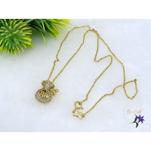 Antiallegén bőrbarát kis pénzes zsák cirkóna kövekkel díszített medálos nyaklánc Szin. 14K Méret: 45Cm Medál: 15x10mm