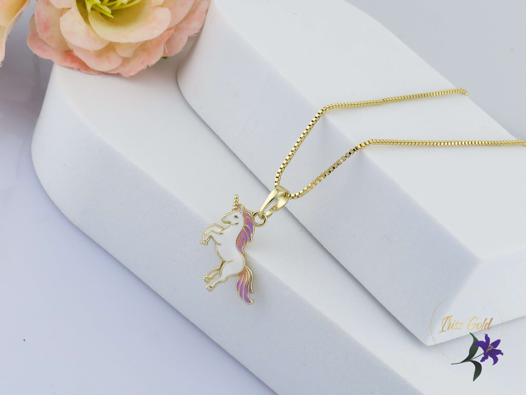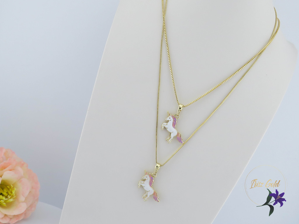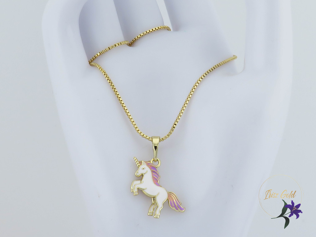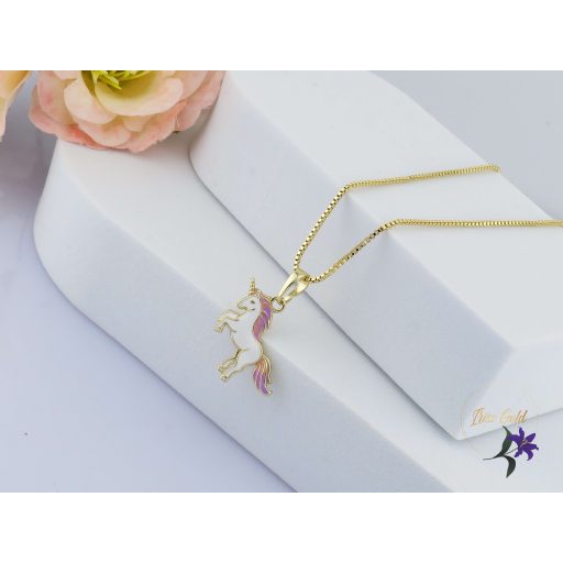 Antiallergén bőrbarát unikornis medálos gyermek nyaklánc Szin: 14K Kézzel festett unikornis fehér rózsaszín Méret: 35 cm Medál: 20x20 mm
