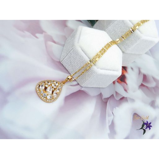 Gold Filled csepp alakú medál fehér cirkónia kövekkel díszítve Szin: 18K Méret: 50 cm/2mm Medál: 25x15mm