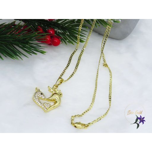 Gold Filled szarvas és gidája medálos nyaklánc Egy szívet alkot a két állatka gida cirkóna kővel díszítve Szin: 14K Méret: 50 cm Medál: 30x20mm