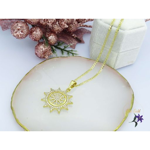 Gold Filled nap medálos nyaklánc . Medált apró cirkóna kövek díszítik Szin: 14K Méret: 50 cm Medál: 32x24mm