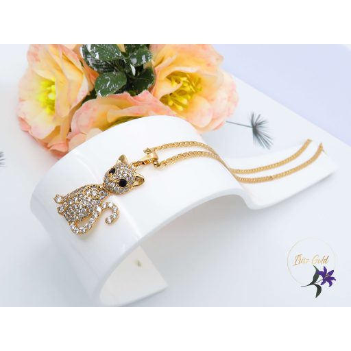 Gold Filled bájos cica mídalos nyaklánc .Gazdagon díszített apró cirkon kövekkel Szin: 18K Méret: lánc 50cm / 2mm Medál: 25x13mm