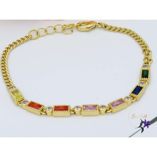 Gold Filled elegáns színes köves karkötő Szin.14K Méret: 16 cm +3 cm szélesség: 3mm Kövek színe , sárga, pink,rózsaszin, kék, zöld