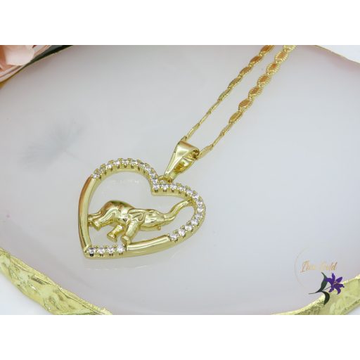 Antiallergén elefánt medálos nyaklánc .Szív alakban ormányár felfelé tartó elefánt Szin: 14 K Méret: lánc 60 cm/3mm Medál: 30x25mm Rövidebb lánc is kérhető hozzá más féle szemekkel!