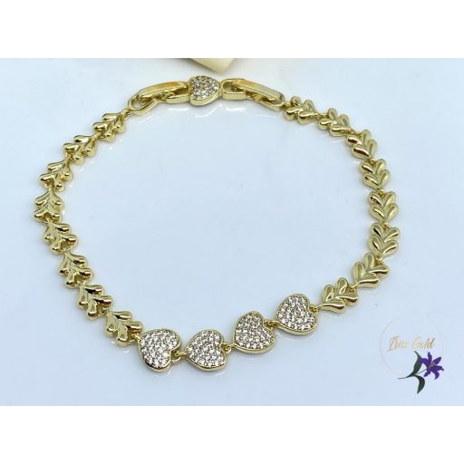 Gyönyörű 14K karkötő középen 4 pici sziv.