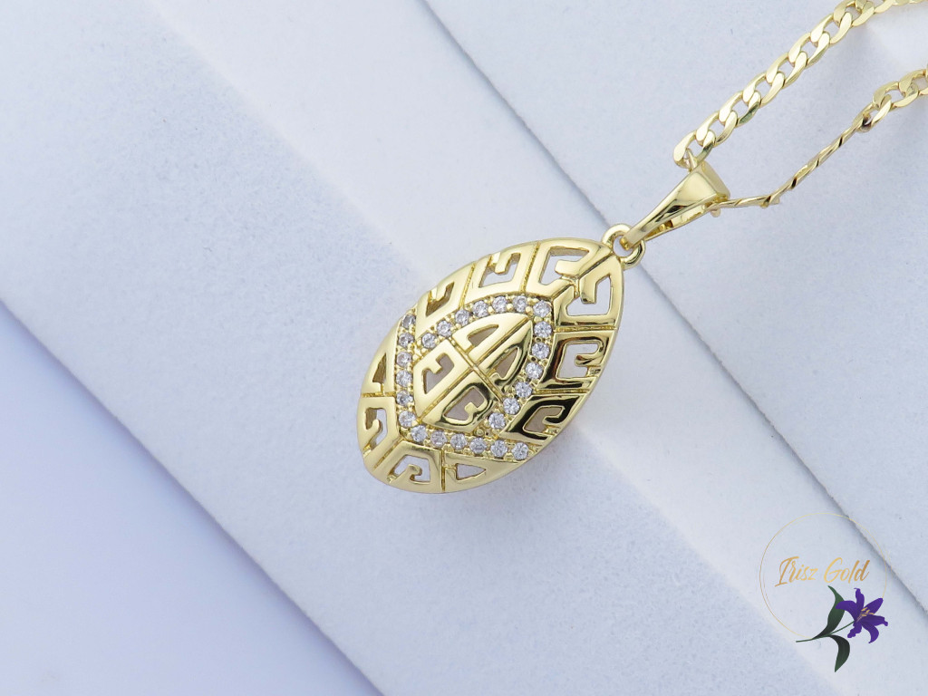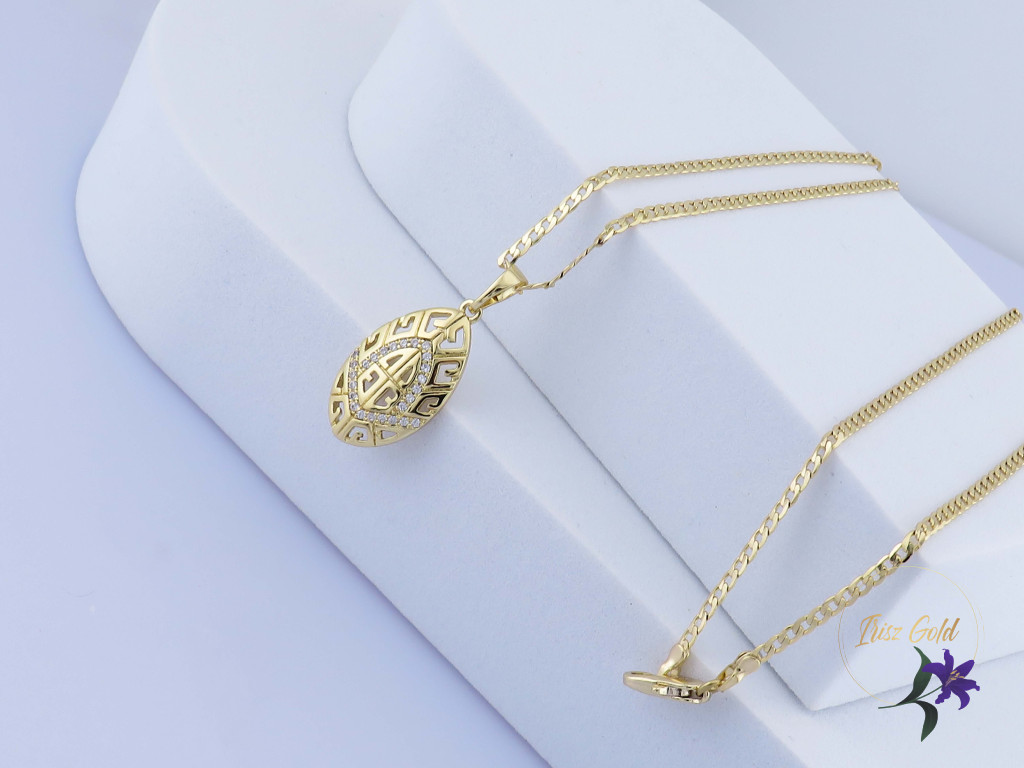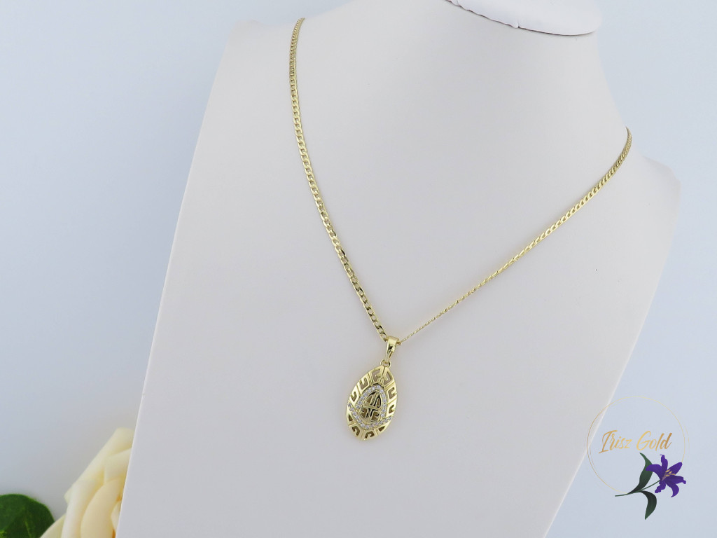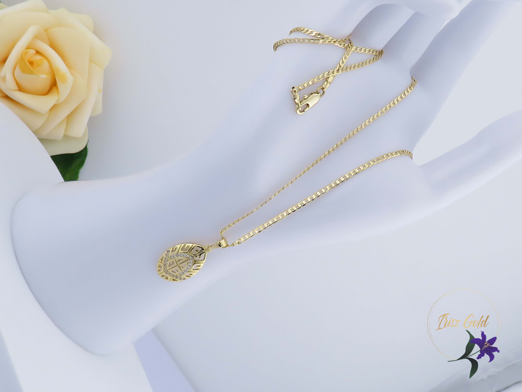 Antiallergén bőrbarát hosszúkás medál középen kereszt széle metszett díszítés Szin: 14K Méret: 60 cm Medál: 20x13 mm