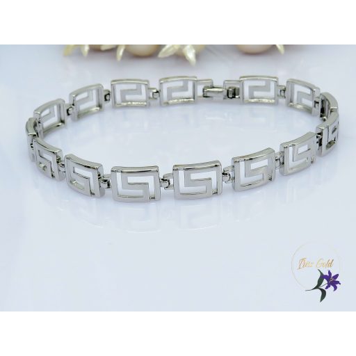 Az Aprizza antiallergén görög motívumos karkötő letisztult, mégis karakteres kiegészítő, amely jól illik a mindennapi öltözethez és az alkalmi megjelenéshez is. Klasszikus görög mintázata időtálló stílust ad, így könnyen kombinálható más ékszerekkel.